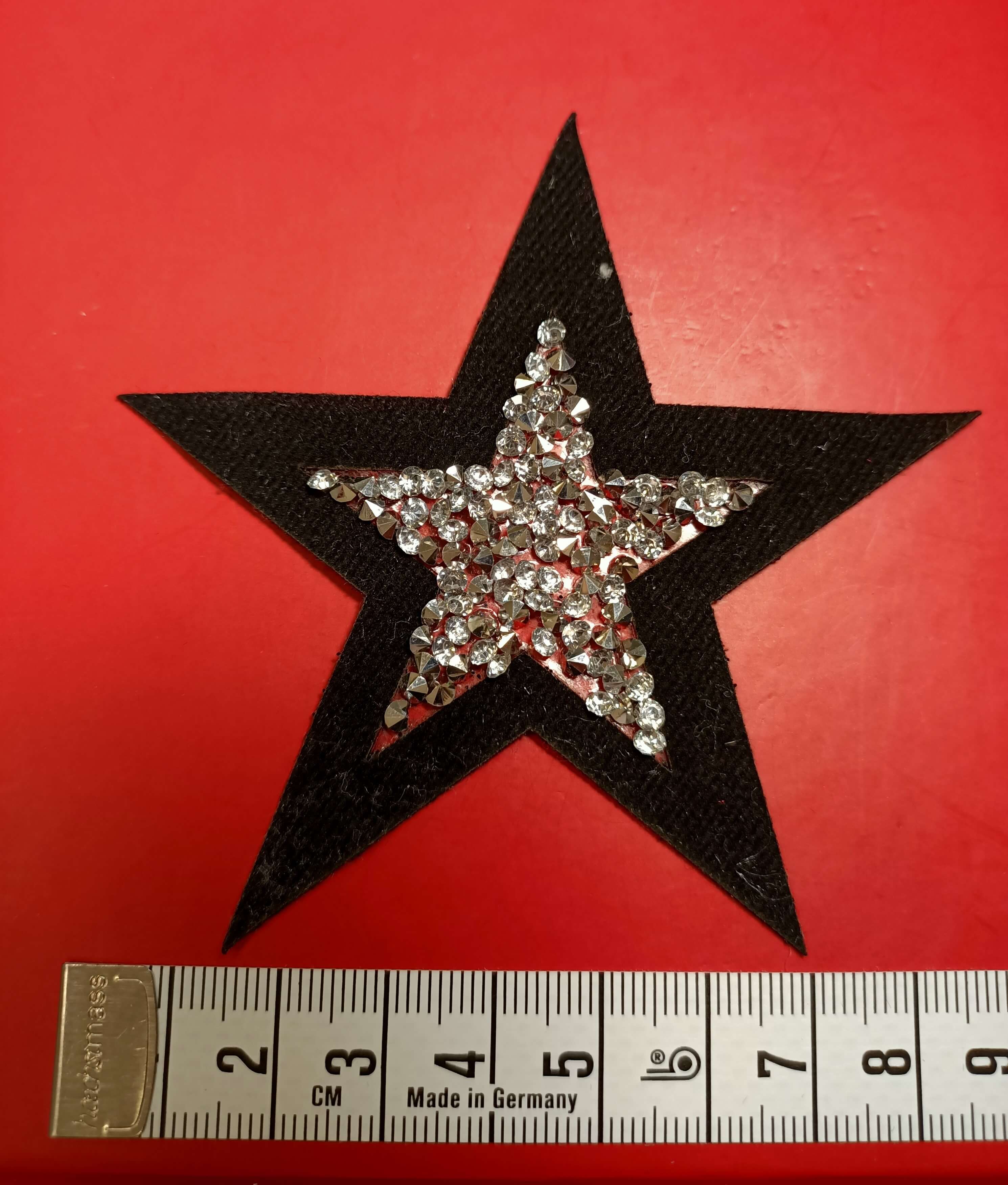 Aplikacja w kształcie gwiazdki z klejem do wklejania na gorąco. Wymiar to 9 cm. Nadaje się do ozdoby różnorodnych produktów takich jak odzież, plecaki, torby itd. Może służyć również jako łatka do zniszczonej odzieży. Produkt wykonany w Polsce. Można prać do 40 C.