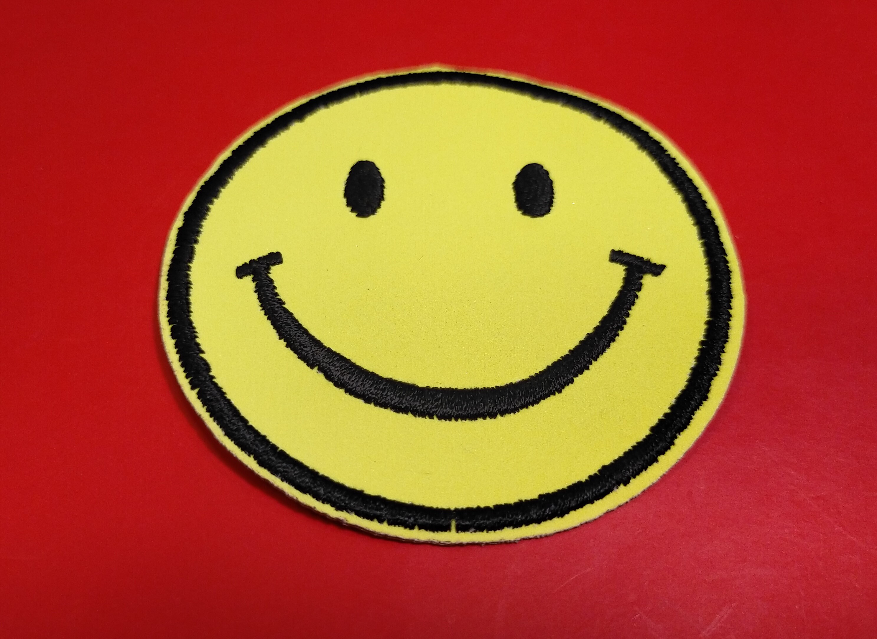 Okrągła aplikacja w kolorze jaskrawy żółty, przedstawiająca buźkę z klejem do wklejania na gorąco. Wymiar to 6 cm średnicy. Nadaje się do ozdoby różnorodnych produktów takich jak odzież, plecaki, torby itd. Może służyć również jako łatka do zniszczonej odzieży. Produkt wykonany w Polsce. Można prac do 40 C.