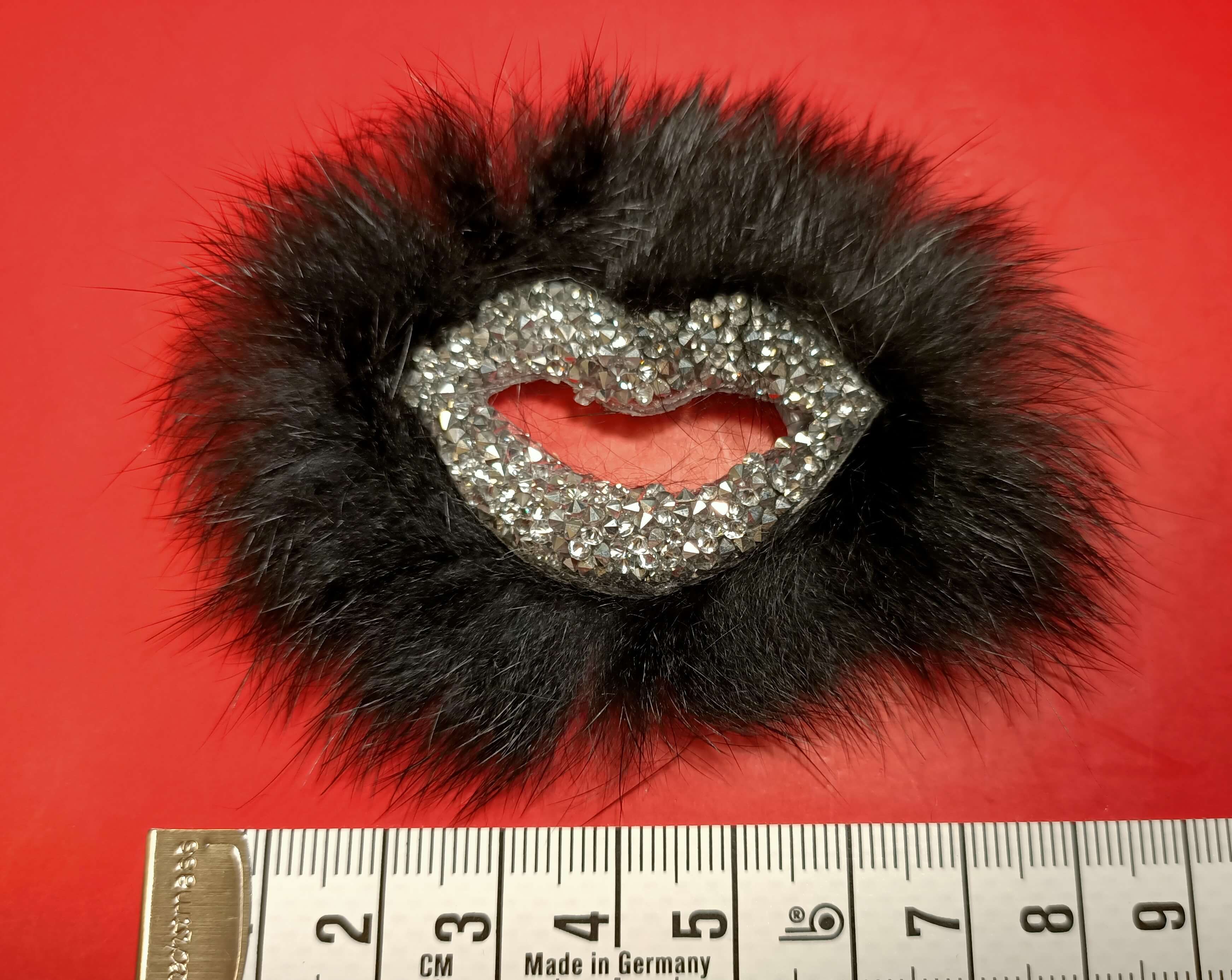 Aplikacja w kształcie ust z czarnymi piórkami do naszycia . Wymiar to 8 cm. Nadaje się do ozdoby różnorodnych produktów takich jak odzież, plecaki, torby itd. Może służyć również jako łatka do zniszczonej odzieży.