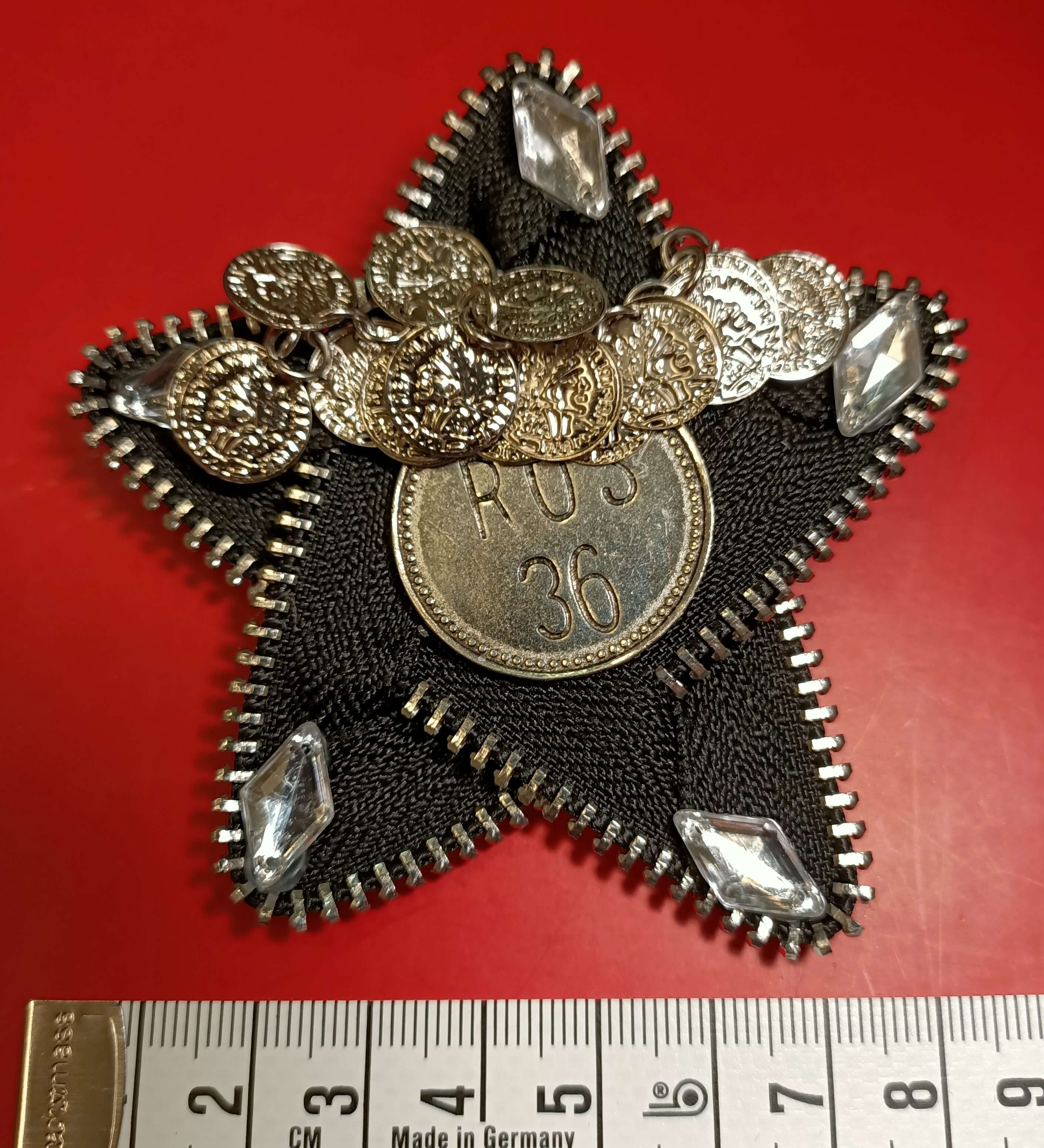 Broszka rockowa  gwiazdka. Wymiar to 8 cm. Przykładowe zastosowanie: do bluzek, płaszczy, kurtek, plecaków. torebek