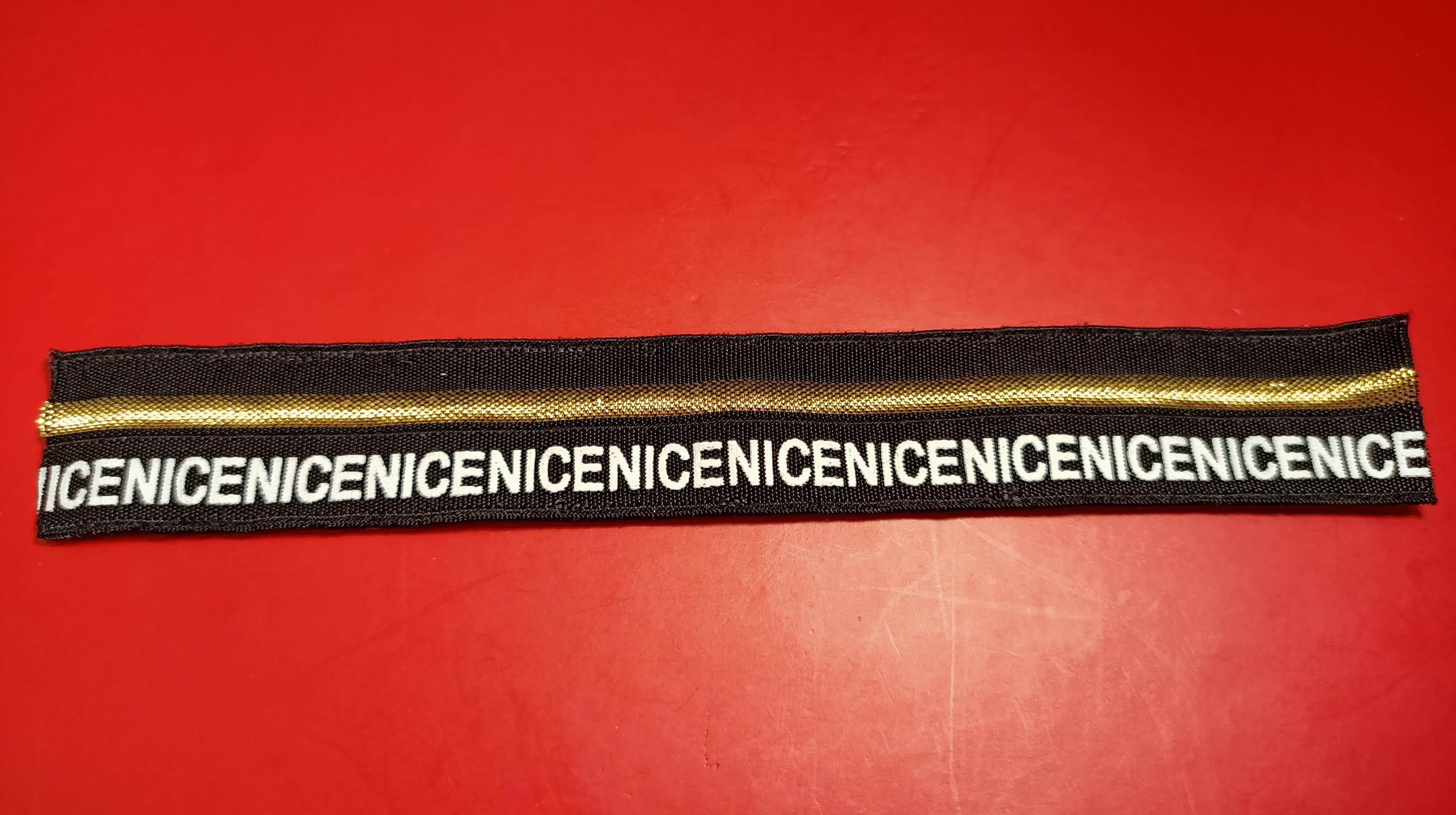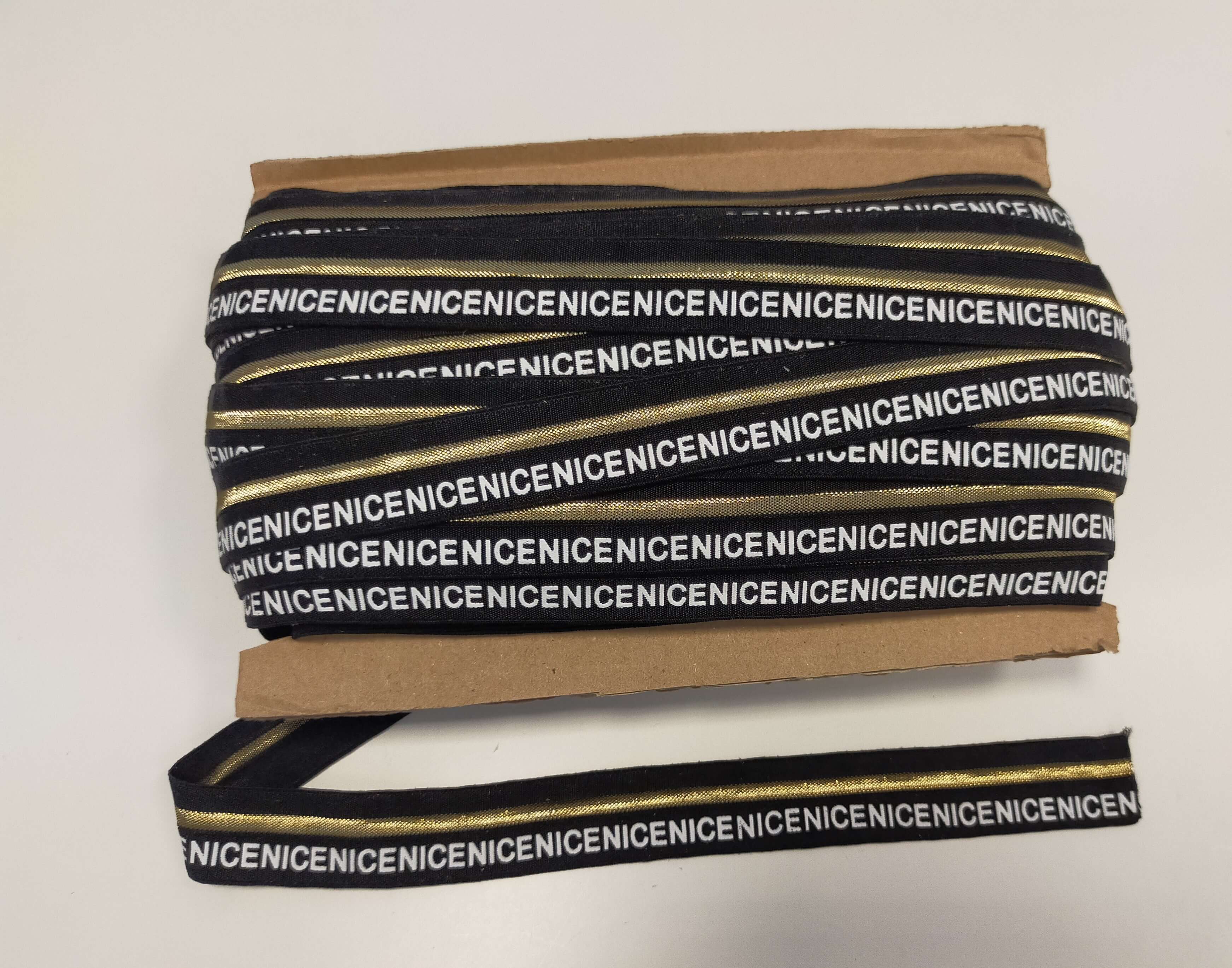 Guma  Nice złota.  Przykładowe zastosowanie: do bluzek, bluz, spodni, kurtek, plecaków.