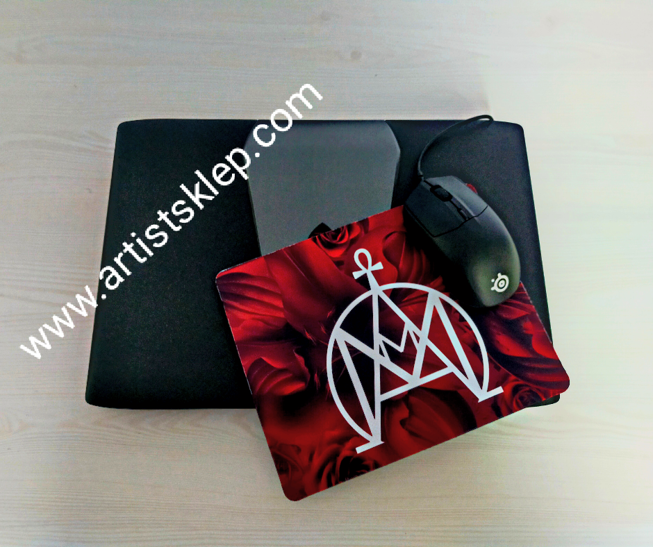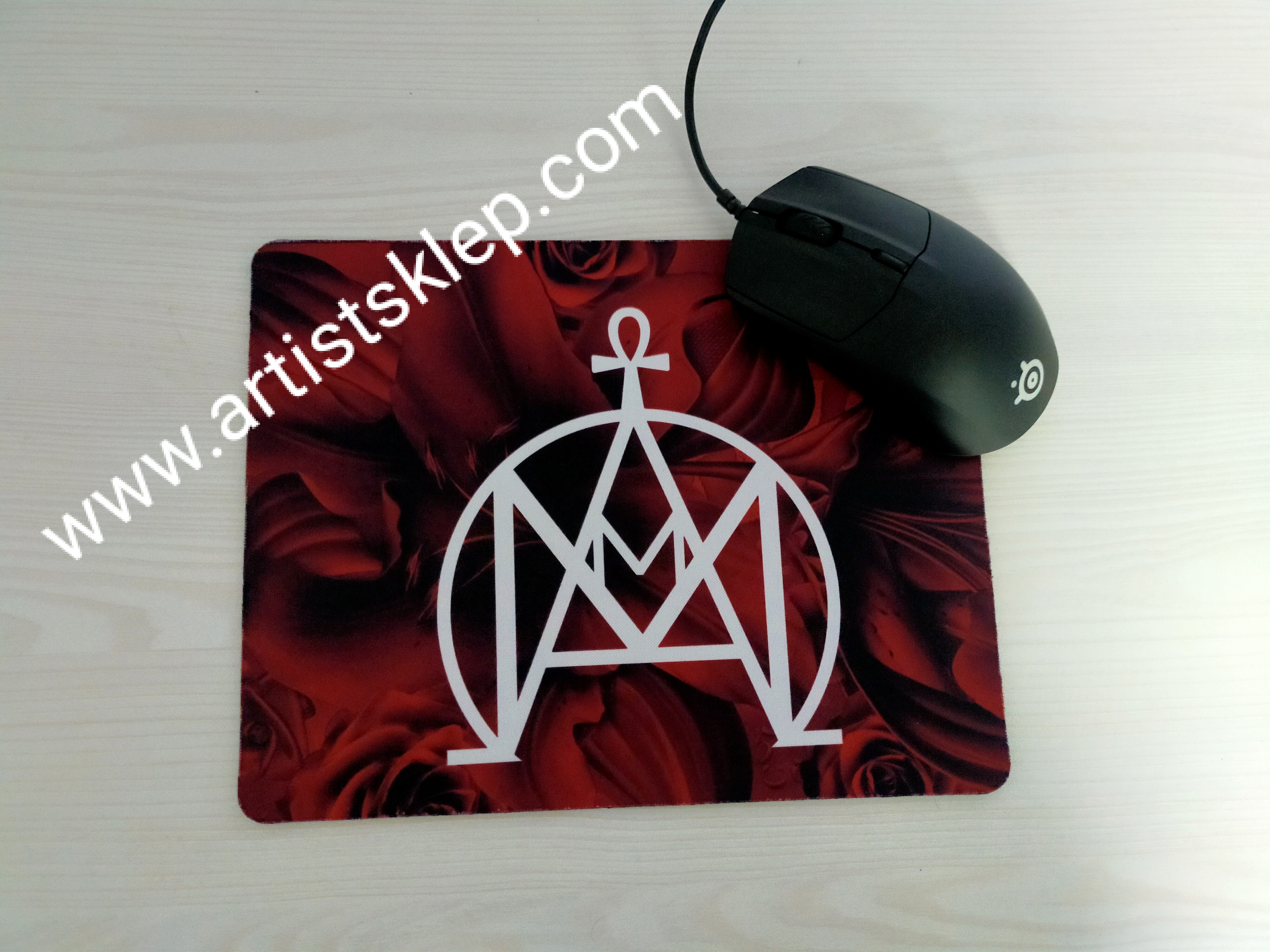 Podkładka pod mysz "MM róże ". Materiał przeznaczony do wykonania to: guma i tkanina. Wymiary podkładki: 24,5 cm x 19 cm.